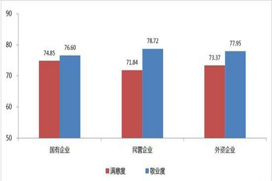 外資企業(yè)員工的滿意度與敬業(yè)度介乎國企與外企之間,同時發(fā)現(xiàn)國企存在的問題是,其員工滿意度水平較高但敬業(yè)度水平有待改進(jìn)。